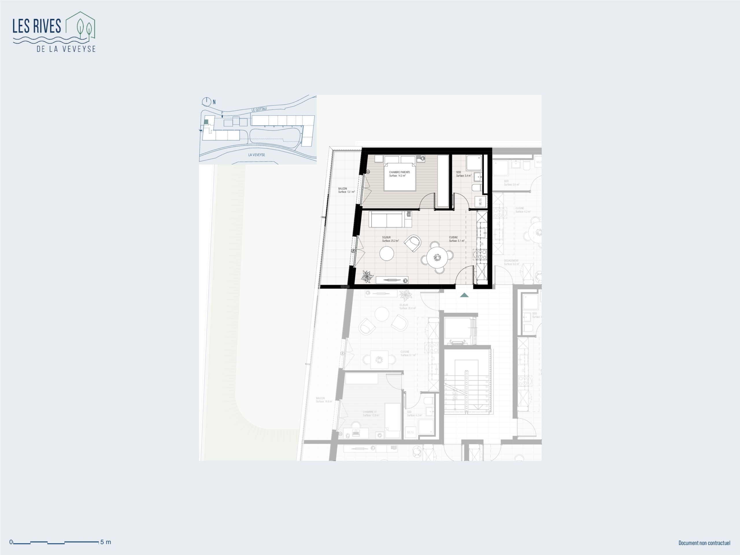 • 1 chambre de 14.3 m²