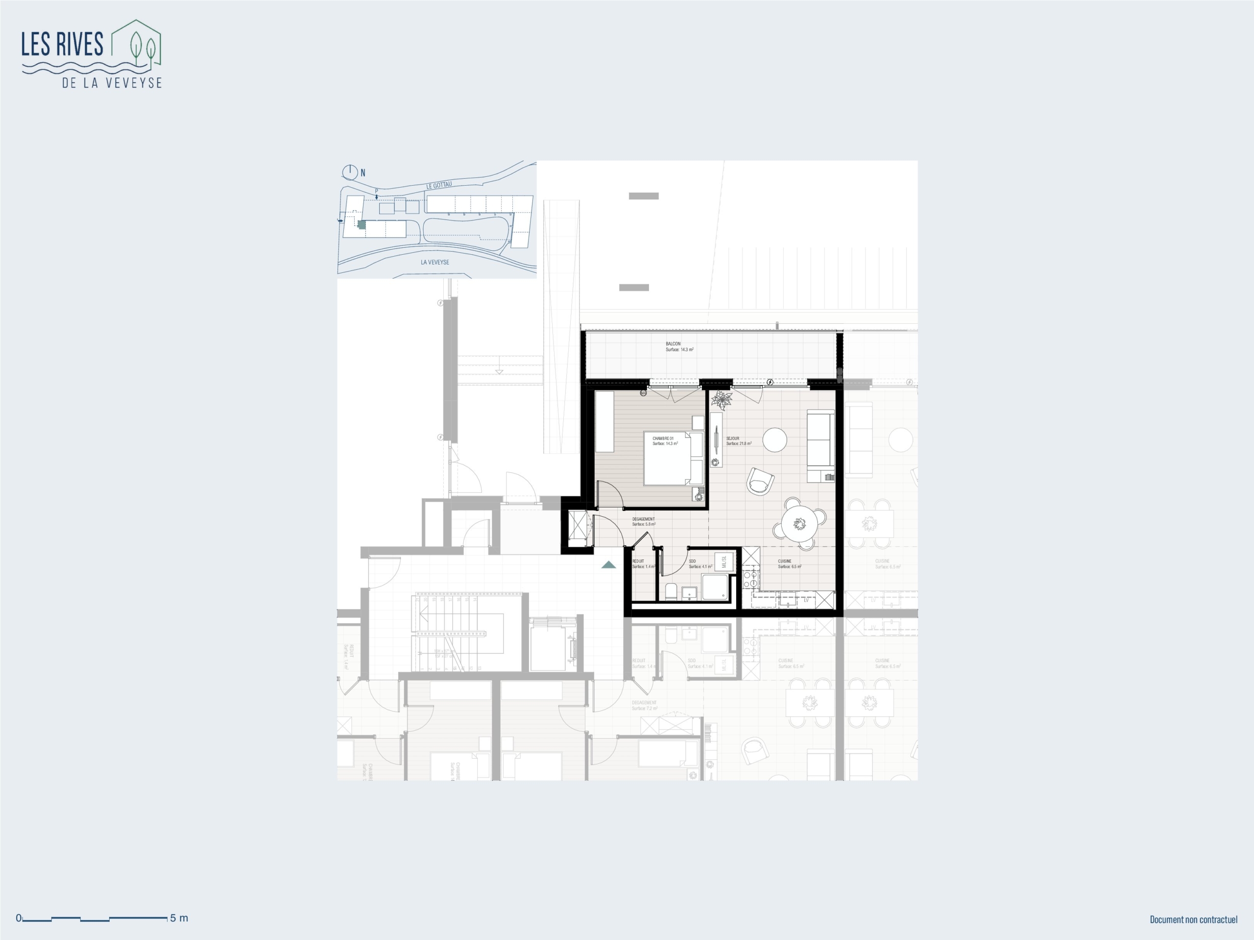 • 1 chambre de 14.3 m²